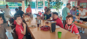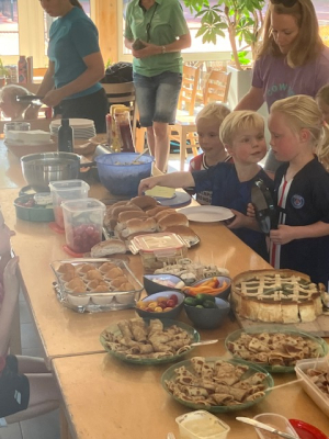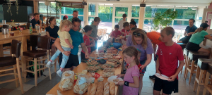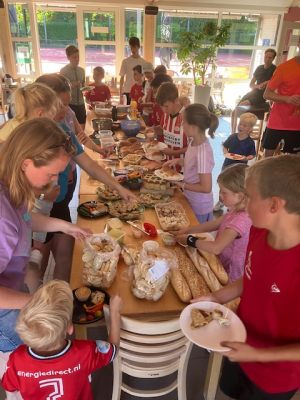Na 2 uurtjes sportief bezig te zijn geweest was het tijd om een hapje te eten. Iedereen had iets lekkers om te delen meegebracht. Mmm, dat smaakte goed!