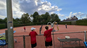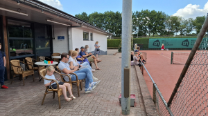 Geel: Na de poulewedstrijden werd bij Geel, na de finales van Oranje en Rood, eerst een halve finale gespeeld. Daarna even een beetje energie bijtanken met een broodje knak voordat de finale werd gespeeld. Wat een mooie wedstrijden hebben we gezien. Uitgeput van de lange rally’s en snoeiharde ballen over en weer wist Maxwell het hoofd koel te houden om in een tiebreak van Thomas te winnen.